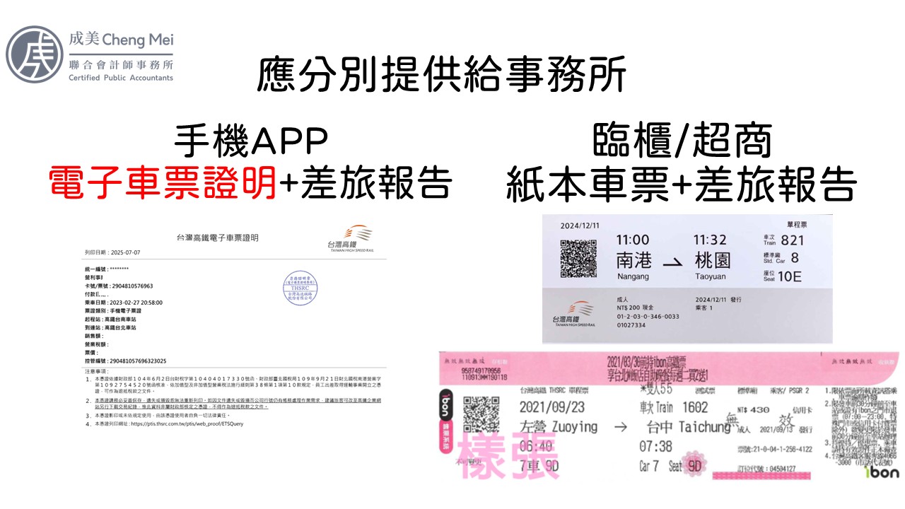 若為臨櫃、超取的紙本車票,則須備妥車票本人+差旅報告